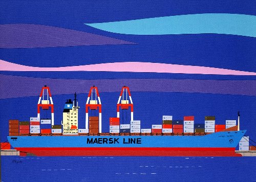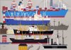 マークスラインのコンテナ船 切り絵 B3 YR001-P077 |