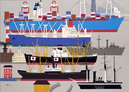 開港140年(貨物船) 切り絵 B2 YR001-P074 |