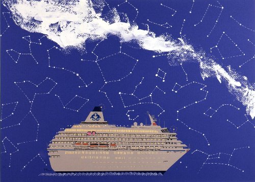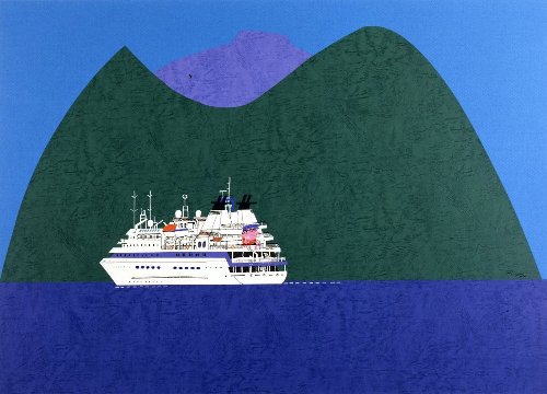 鳥島沖のクルーズ客船 おせあにっくぐれいす 切り絵 B2 YR001-P073 |